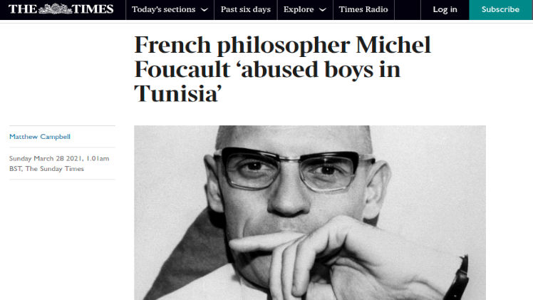 El filósofo frances Michel Foucault, uno de los pensadores posmodernos más reconocidos por el ámbito académico, fue acusado de practicar la pedofilia, abusando de niños mientras vivió en Túnez, a fines de los años ’60. La revelación fue realizada por el economista, periodista, filósofo y autor francés Guy Sorman de 77 años, al describir su visita a Foucault, cuando este vivía en el paradisíaco pueblo de Sidi Bou Said, durante la Semana Santa de 1969.
