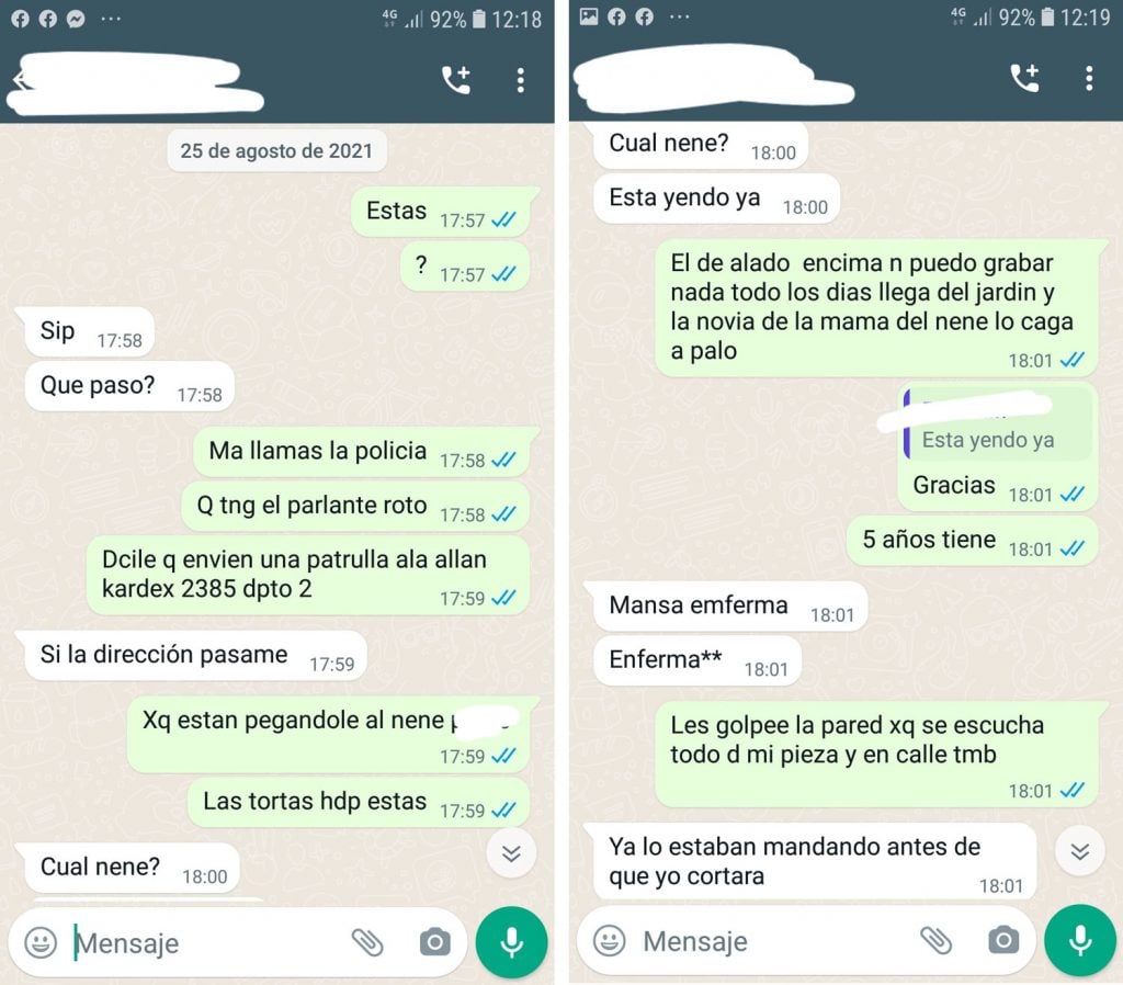 Una vez que se conoció el caso se viralizaron capturas de WhatsApp de una vecina que denunció el 25 de agosto de 2021 que escuchaba los golpes que recibía el pequeño. También en esos chats revela que la pareja de la madre lo golpeaba.