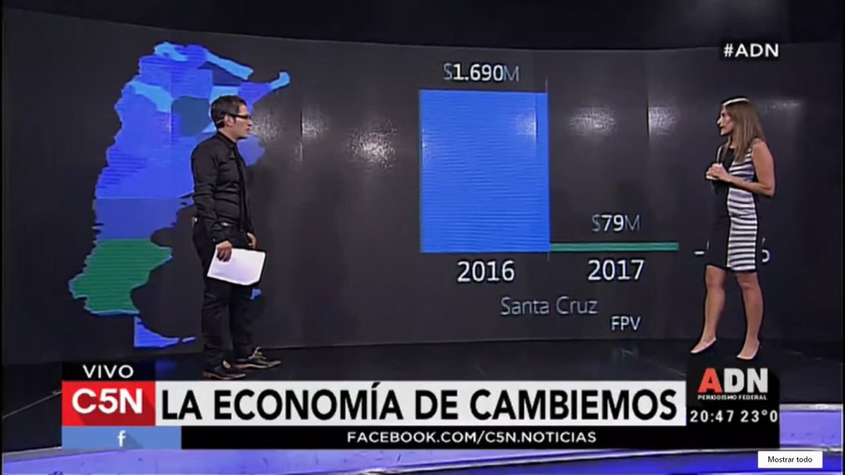 El recorte abrupto de los ya pocos recursos entregados a Santa Cruz en 2017 para impedir el pago de salarios e incendiar la provincia. Fuente: ADN/C5N