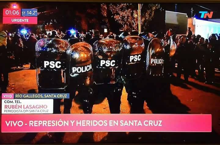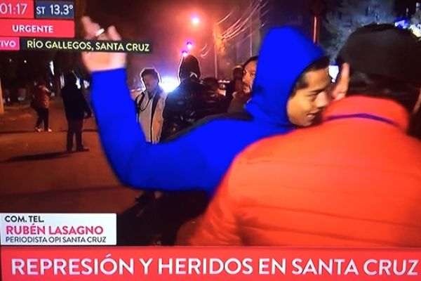 Otra situación extraña, y que deberá ser investigada, fue que de los dos heridos por balas de goma, uno, Jorge Riquelme, fotógrafo de la Asociación Trabajadores del Estado (ATE) fue impactado en la cabeza y en su declaración posterior describió el uso de un sistema láser que le apuntaba. ¿A quién le sirve políticamente que un reportero gráfico sea herido en medio de una manifestación? ¿Fue la policía quien ejecutó ese disparo totalmente innecesario para sumar un costo político a Alicia Kirchner o pudo provenir de algún servicio de inteligencia infiltrado para aumentar el dramatismo de la escena? «No sé si fueron manifestantes o fuerzas de seguridad», contó Riquelme, «me agacho para protegerme y hacer mi trabajo, que estaba empezando. Siento un impacto en la cabeza con mucha violencia. Quiero ponerme en pie y me caigo». Es llamativa también la combinación de una policía fácilmente desbordada (¿superada por la sorpresa de una violencia inesperada?) con un disparo en la cabeza de un reportero gráfico usando una mira telescópica láser. En cualquier caso esto deberá ser investigado por el gobierno de Santa Cruz.