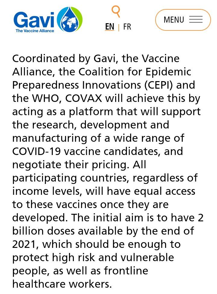 También es importante saber que «COVAX facility» no estará bajo la autoridad de los Estados sino de Gavi, lo cual equivale a decir que está de hecho en manos de la Fundación de Bill y Melinda Gates. Así que carece de toda legitimidad democrática.