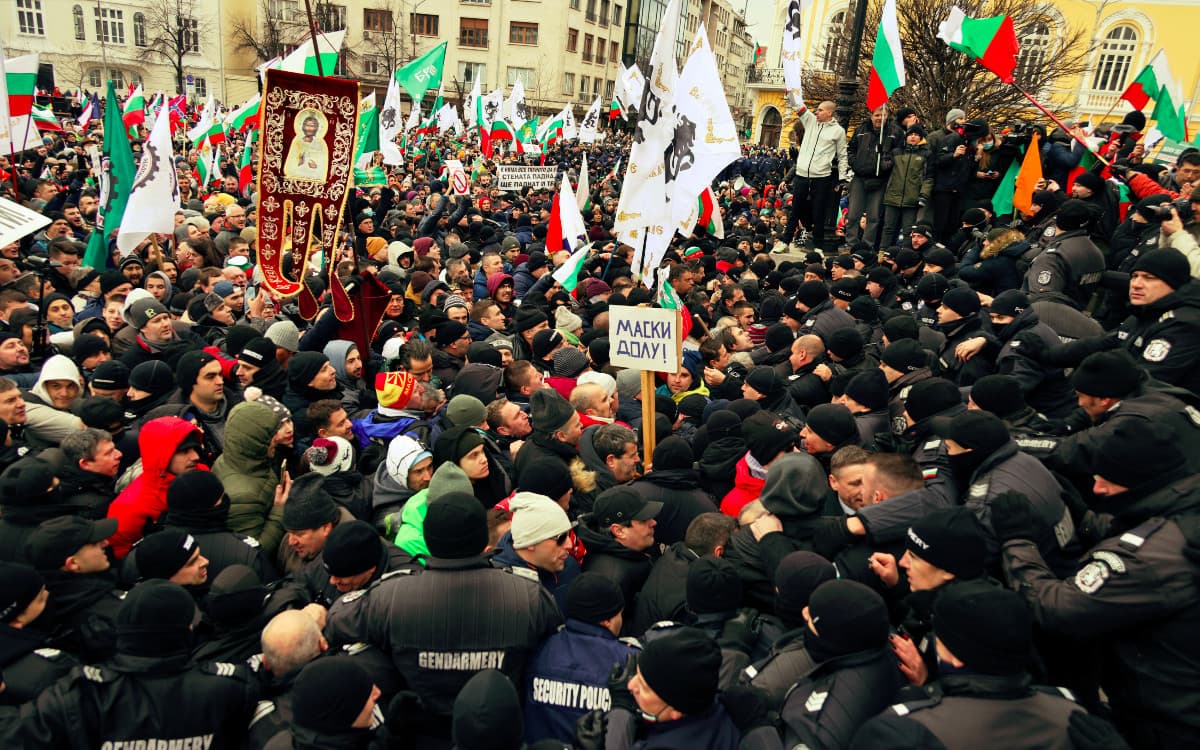 Miles de manifestantes en Bulgaria se enfrentaron el miércoles a la policía al intentar irrumpir en el Parlamento de la capital, Sofía, en protesta contra las restricciones impuestas por el Gobierno bajo el pretexto de combatir el COVID-19, entre ellas, un «pase sanitario» que fuerza indirectamente a inocularse a las personas.