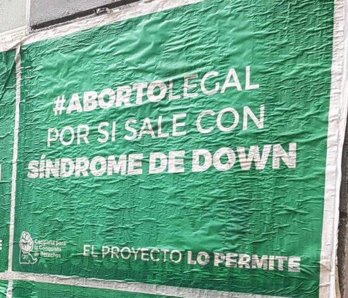 Una inteligente campaña de contrapublicidad dejó expuestos los costados más oscuros y eugenésicos del proyecto de legalización del aborto que se votará el 29 de diciembre en el Senado. Usando la misma estética de la «Campaña Nacional por el Derecho al Aborto Legal, Seguro y Gratuito», aparecieron afiches en distintas zonas de CABA, con mensajes como «#AbortoLegal, por si sale con Síndrome de Down», «#AbortoLegal, para bajar la pobreza matando pobres» o «#AbortoLegal, para que nadie se entere y te sigan violando», acompañados de la frase «el proyecto lo permite». Todos elementos polémicos, pero que quedarán habilitados efectivamente si el actual proyecto se aprueba.