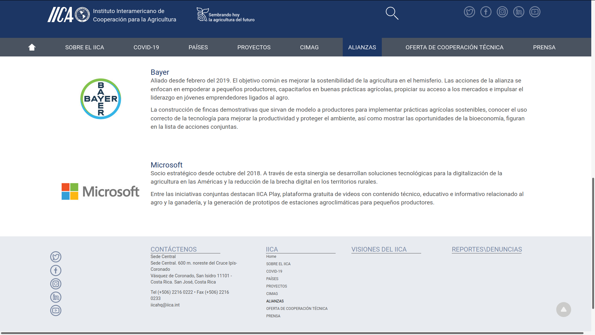 ¿Quiénes están detrás del IICA? entre sus principales «alianzas» aparecen Bayer-Monsanto y Microsoft (Bill Gates).