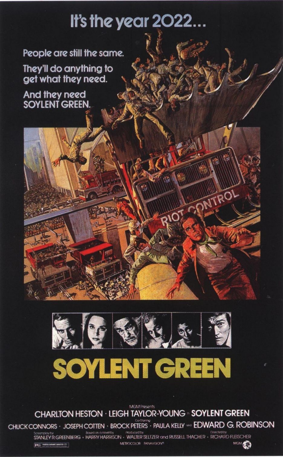Cuál era la verdadera composición del alimento «Soylent Green» lo dejamos para quienes quieran ver la película.