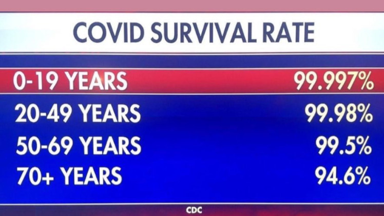 Aquí hay otra forma de ver los mismos números. Si se infecta, sus posibilidades de sobrevivir son las siguientes: