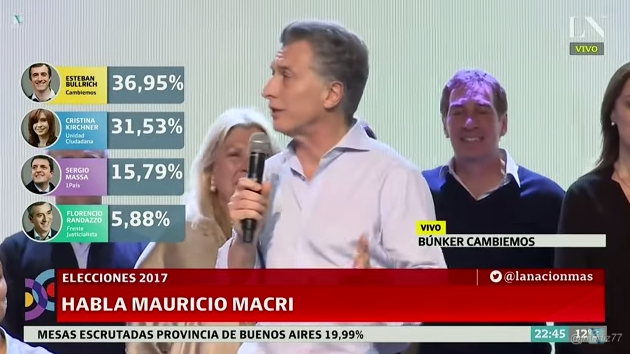El plan fue estratégicamente pensado, por eso ni Vidal ni Macri dijeron en sus discursos «estamos ganando» o «ganamos» (sabían que habían perdido), y solo emitieron un discurso triunfalista para transmitir mediáticamente la imagen de una derrota de Cristina que nunca fue tal. Por eso se eligió deliberadamente mostrar durante las primeras 3 horas solo los votos del interior de la provincia (de pueblos y ciudades estrechamente ligados a la actividad agropecuaria e históricamente antiperonistas en muchos casos) y solo recién después de los discursos de Vidal y Macri empezaron a habilitar con cuentagotas los votos del conurbano bonaerense.