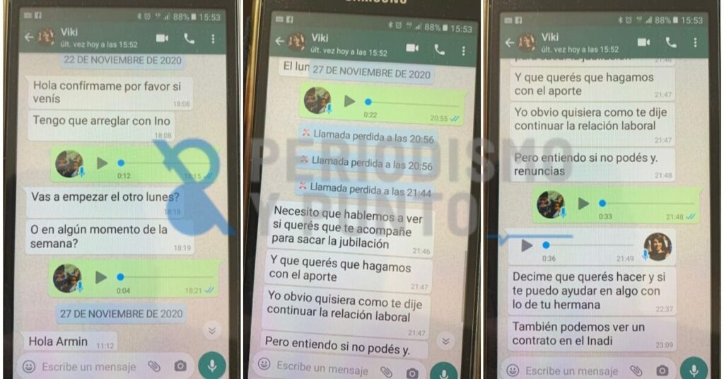 Los abogados de Arminda Oxa acompañaron la denuncia con copias de los mensajes de texto y de voz que intercambiaron Donda y la ex empleada por WhatsApp.