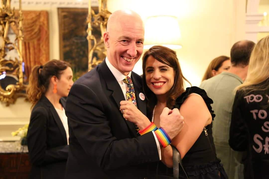 En la imagen: Victoria Donda junto a su jefe político, el embajador británico en la Argentina, Mark Kent.