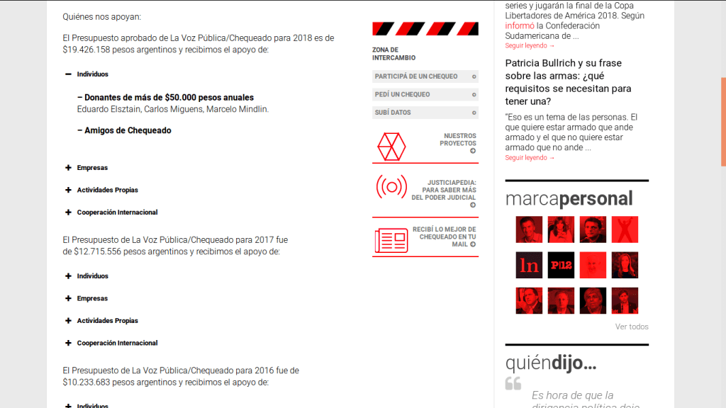 También financian a este «fact checker» corporaciones cercanas a la Embajada de los EEUU como: Arcos Dorados (McDonalds), Coca Cola, DirectTV, Dow, Exxon Mobil, Microsoft.