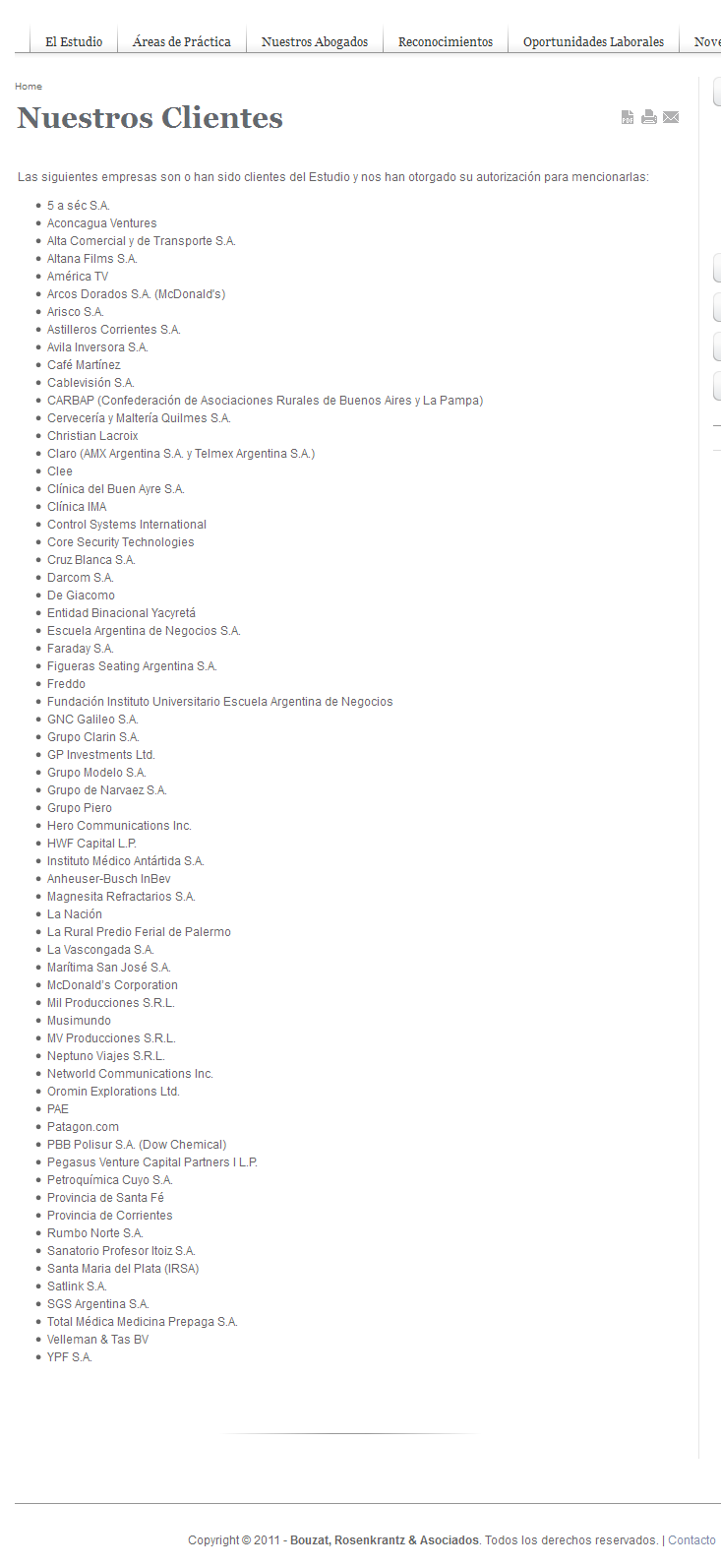 La página oficial de su estudio borró el listado de corporaciones a las que venía representando. Aquí la compartimos desde una captura de pantalla: