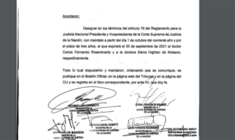 Ricardo Lorenzetti deja de ser el presidente de la Corte Suprema de Justicia, cargo que ejercía desde 2007. Será reemplazado por Elena Highton de Nolasco, hasta que asuma el juez Carlos Rosenkrantz a partir del 1 de octubre de 2018, un histórico abogado de las corporaciones y especialmente del Grupo Clarín.