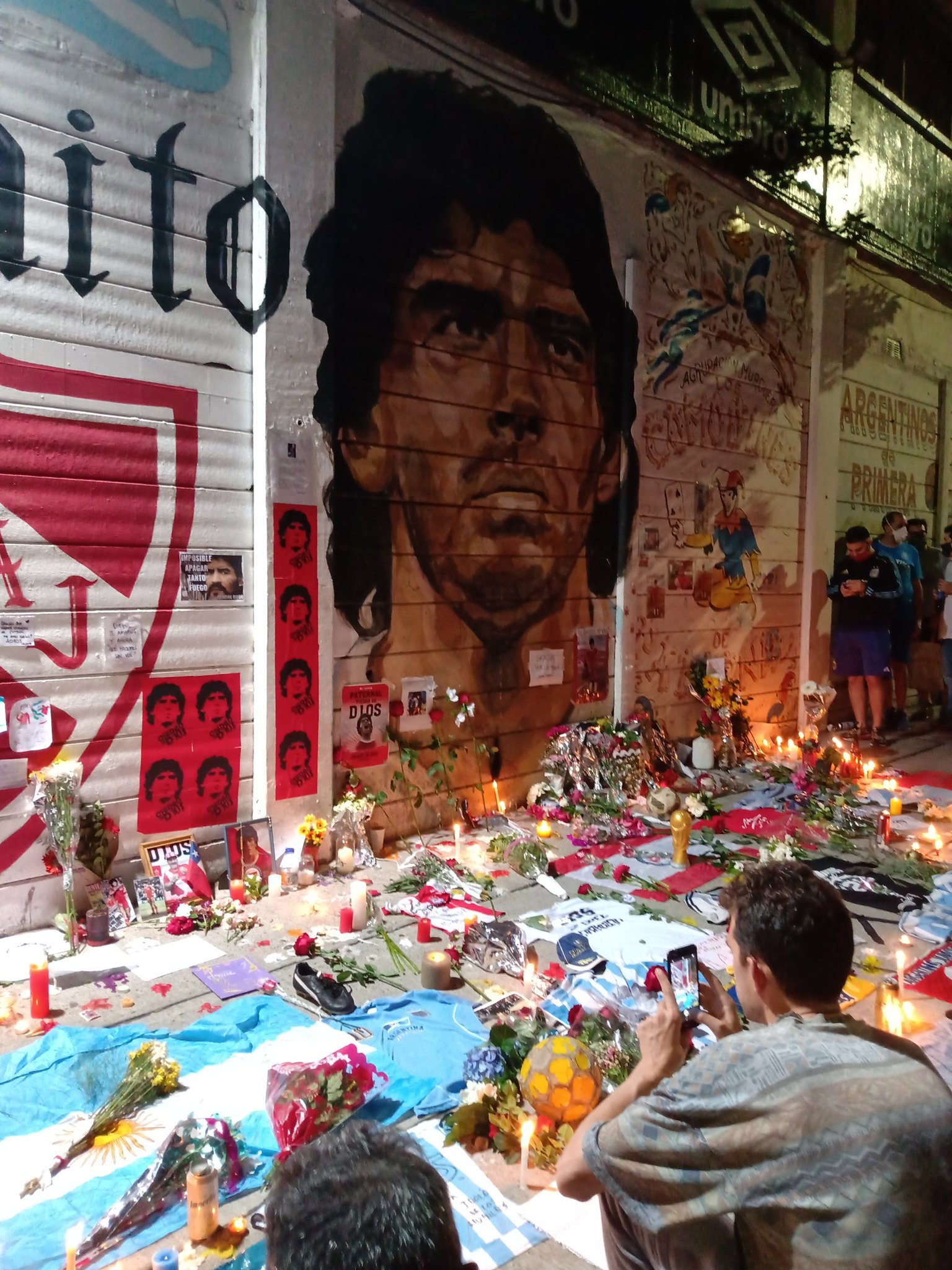 Pienso, mientras el viento fuertísimo de la estepa seca los dedos, todavía cansinos, tratándose de acoplar a las ideas, y se me aparecen algunos atisbos de lo que significa este dolor inmenso para nosotros. Pero tratamos, a medida que nos recuperamos, de saltar esa espinosa ligustrina del morbo, la farándula, los noticieros… y luego de exhalar, mirando tantas interminables expresiones de amor y memoria, aparece una idea que puede, quizás, servir para desovillar y volver a hacer comprensible todo esto, en medio de una situación de debacle nacional sin precedentes: la idea de que el Diego se nos aparece como medida de la Patria, que es un lugar donde reposa como ningún otro qué tan adentro tenés a la Argentina, y qué tan parte de su Pueblo te considerás.