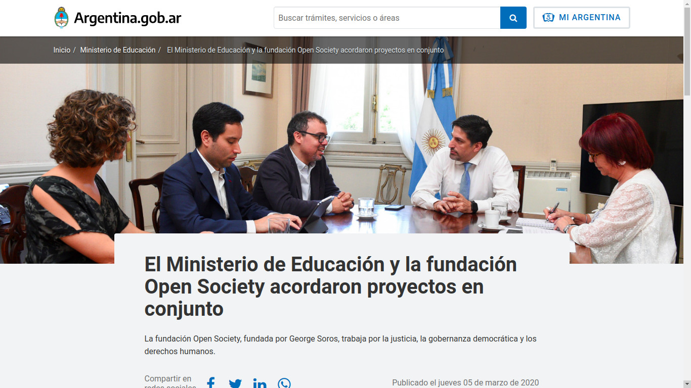 Trotta también hizo referencia a potenciar intercambios con las instituciones educativas de Soros: “También expresamos desde nuestro Ministerio el interés de poder establecer una cooperación sur-sur con centros de excelencia que tiene Open Society en distintas partes del mundo”. El propio Soros recientemente anunció que donará U$S 1000 millones de dólares para la creación de universidades en todo el mundo «para luchar contra el populismo» y en pos de sus ideas liberales de «sociedad abierta» (un concepto tomado de La sociedad abierta y sus enemigos de Karl Popper).