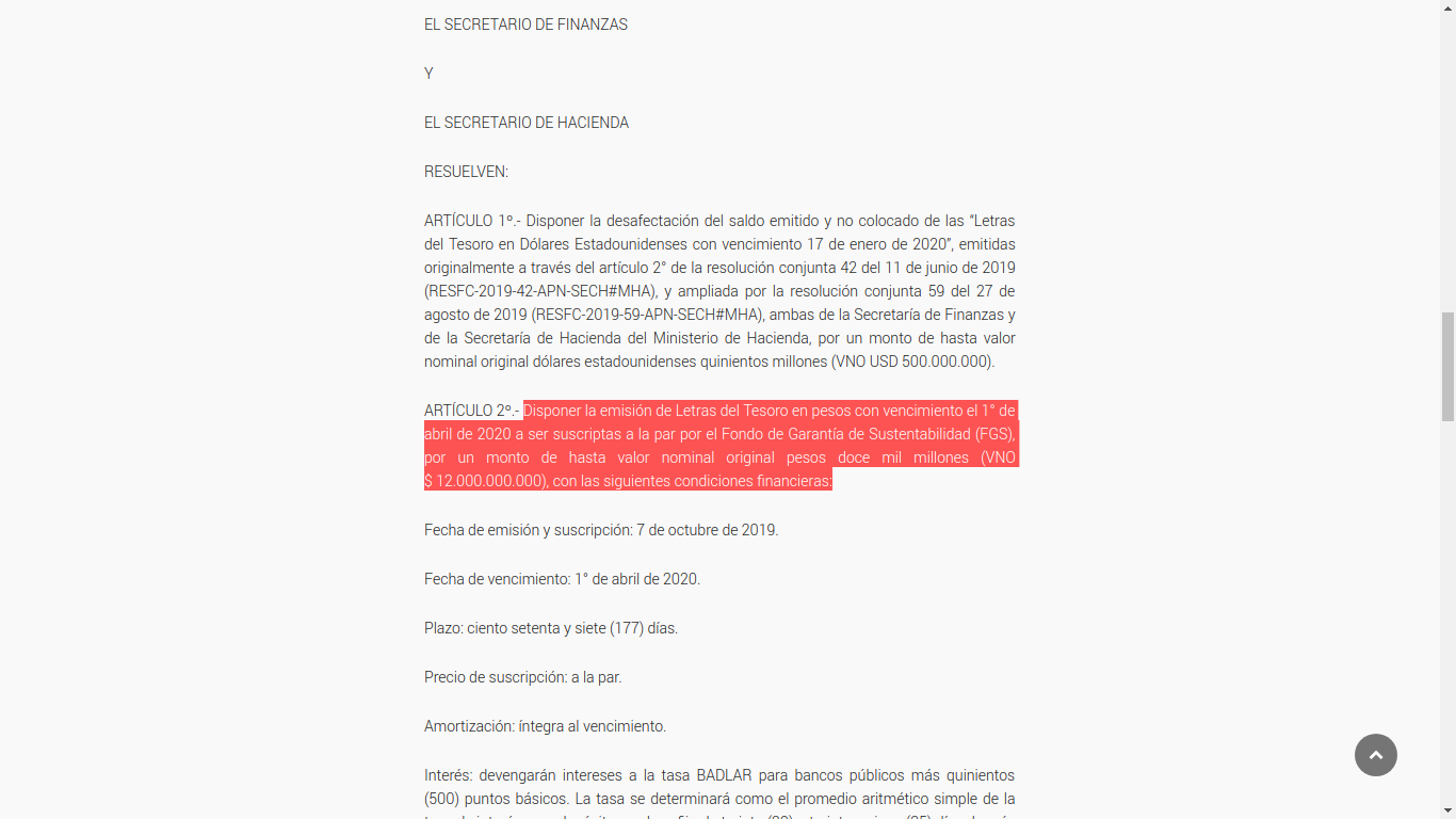 Esta medida fue dada a conocer en el Boletín Oficial por la Resolución 65/2019 de las secretarías de Finanzas y Hacienda.