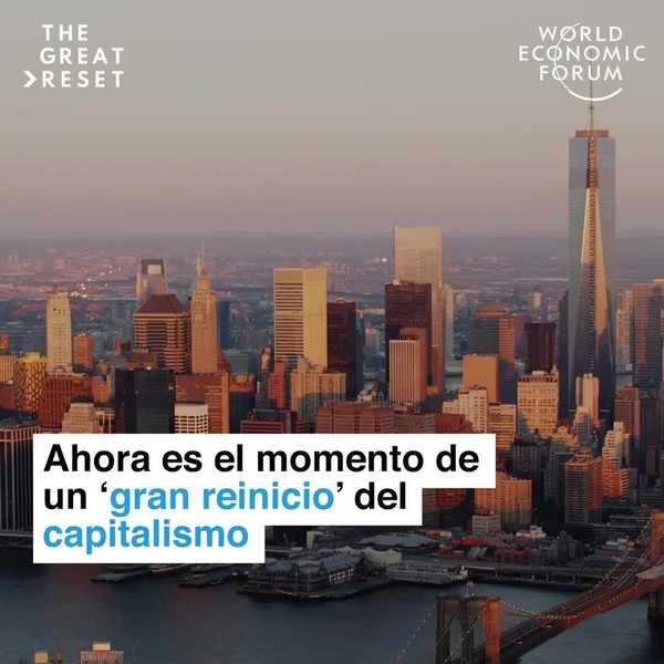 El Foro Económico Mundial y el Fondo Monetario Internacional están impulsando lo que llaman un «Gran Reseteo» de la economía global. A este efecto realizarán en enero de 2021 en Davos un evento denominado «The Great Reset». Convocan a la misma Klaus Schwab, fundador y presidente del World Economic Forum; el príncipe Carlos, hijo mayor de la reina Isabel II de Gran Bretaña; y António Guterres, secretario general de las Naciones Unidas. En sus videos oficiales de difusión llaman a «apretar el botón reset del capitalismo».