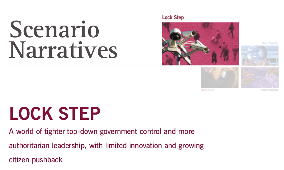 En el escenario que coincide con nuestro presente, la Rockefeller Foundation menciona que se marchará hacia«un mundo de control gubernamental de arriba hacia abajo más estricto junto a un liderazgo autoritario«, destacando a China como el país que quedará mejor posicionado y a EEUU hundiéndose en la propagación masiva del virus por su inicial «indulgencia» para con el mismo.