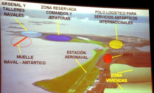 La delegación fue recibida en Ushuaia por el Jefe de Estado Mayor del ANAU, Capitán de Navío Néstor Darío Cersofios, quien realizó una exposición en la sala de Operaciones del ANAU, explicando las distintas tareas y operaciones que se llevan a cabo en la región. Por suparte, el Capitán de Navío Gerardo Boccardo informó al Jefe del Comando Sur sobre el proyecto de la Base Naval.