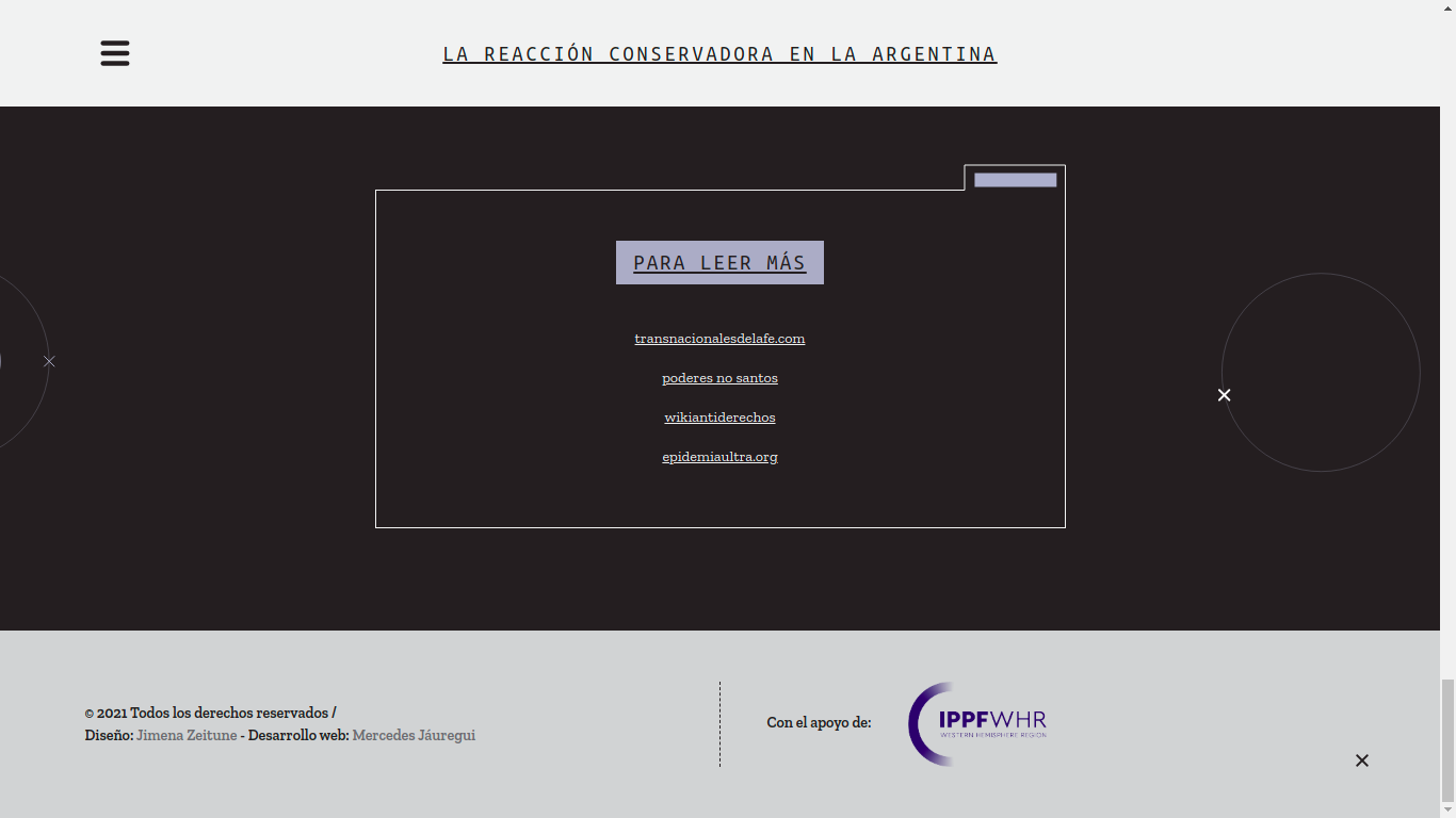 Con un estilo propio del totalitarismo de pasados dictatoriales (algo que no sorprende dado el fundamentalismo propio de estos personajes), el sitio web plantea «Aquí se pueden encontrar personas y organizaciones y sus relaciones identificables con la reacción conservadora. La búsqueda puede hacerse a partir de distintos filtros: por actividad (redes sociales, partidos políticos, iglesias, medios, poderes del Estado, think tanks, organizaciones de la sociedad civil, entre otros), territorio, o individualmente por nombre. Al cliquear en cada foto, aparece la biografía correspondiente y su red de vínculos».