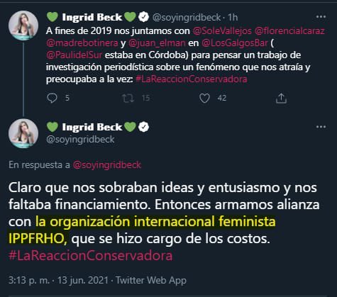 La International Planned Parenthood Federation, principal lobby abortista global, con sede en Londres, financió en la Argentina un sitio web destinado a armar una «lista negra» de periodistas, políticos, militantes, twitteros, «influencers jóvenes», líderes religiosos, legisladores y organizaciones que se oponen o han sido críticos con su agenda legislativa y cultural en el país. El espacio de internet está a cargo de la humorista fundadora de «Revista Barcelona», Ingrid Beck, y los «periodistas» Juan Elman, Florencia Alcaraz, Paula Hernández y Paula Rodríguez.
