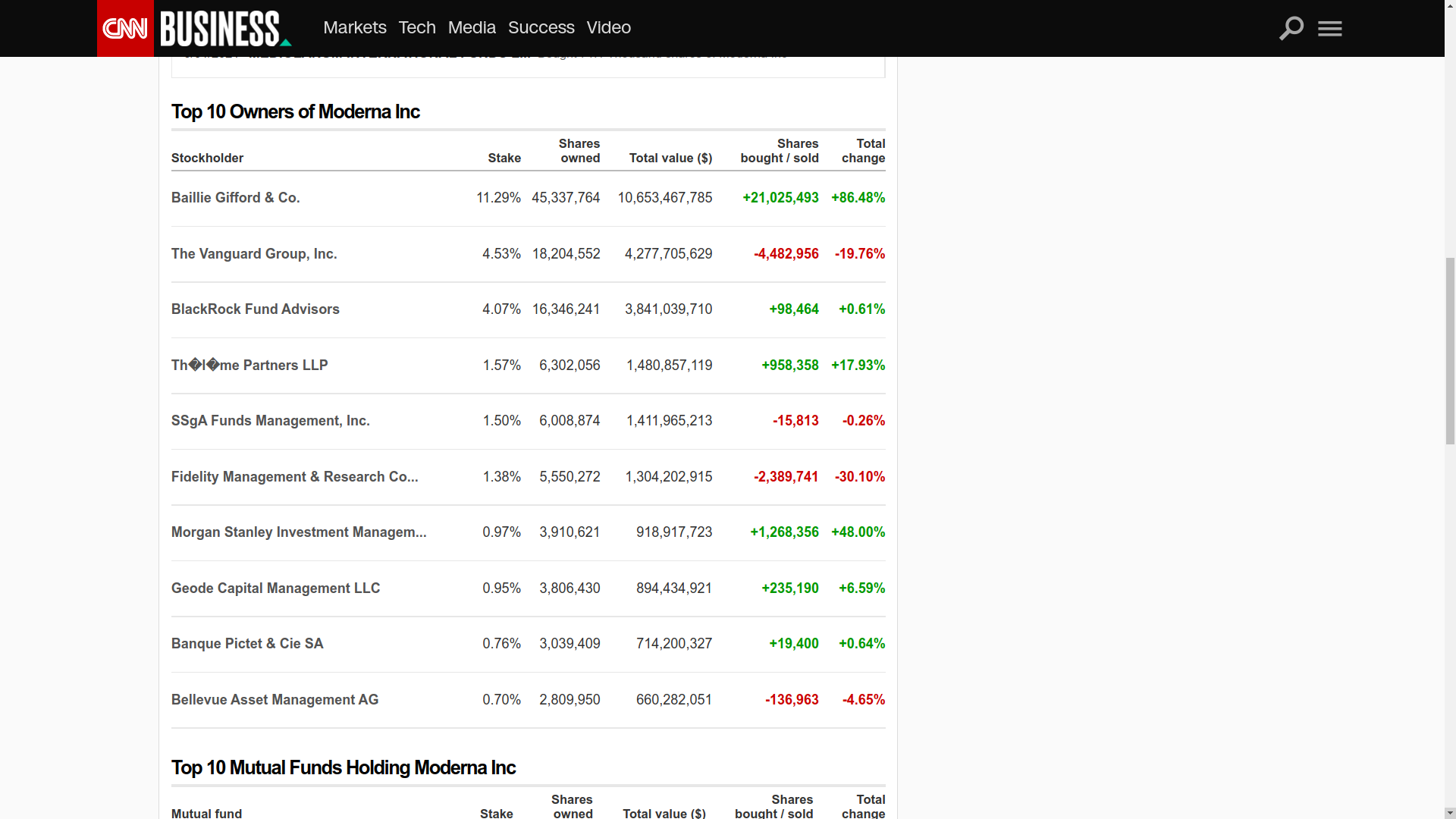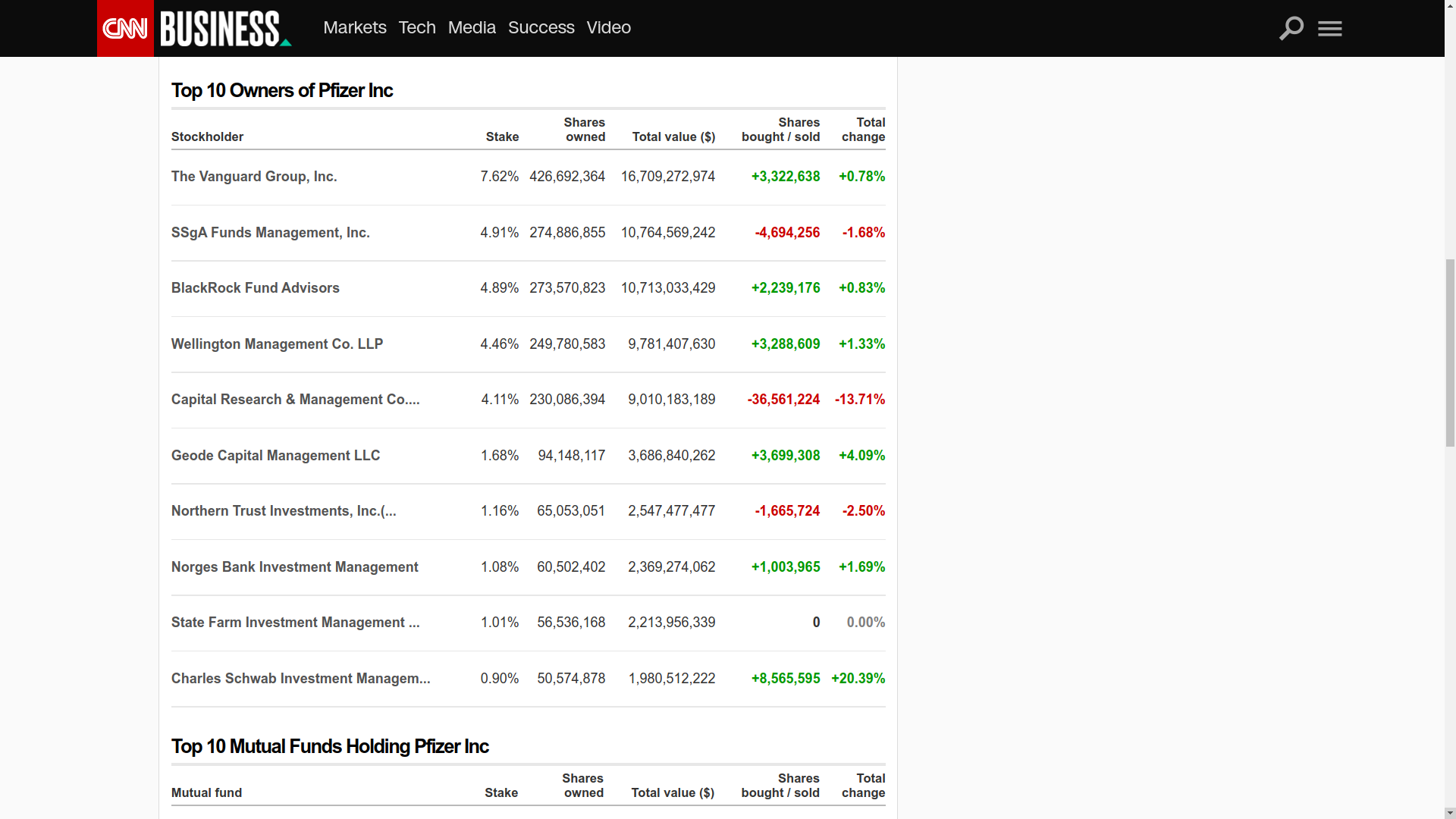 Por otra parte, los principales accionistas institucionales de Pfizer, Moderna y Johnson & Johnson son los mismos: los megafondos financieros BlackRock, Vanguard Group y State Street (SSgA).