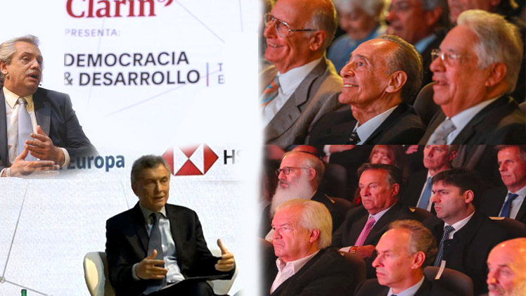 El poder económico tomó examen a los dos principales candidatos presidenciales en el foro organizado por el Grupo Clarín. Mauricio Macri y Alberto Fernández respondieron preguntas ante las miradas expectantes de Héctor Magnetto, Eduardo Elsztain (IRSA / Cresud / Banco Hipotecario), Luis Betnaza (Techint), Hugo Sigman (Laboratorios ELEA, Capital Intelectual), Marcelo Mindlin (Pampa Energía), Alfredo Coto y Martín Cabrales, entre otros.
