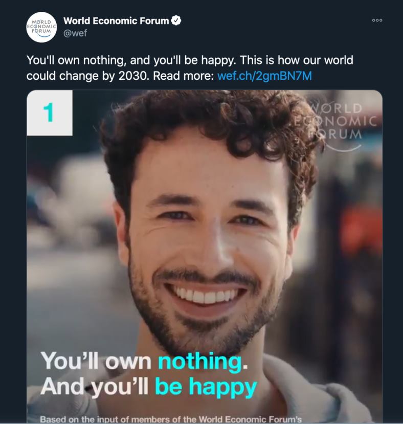 El presidente del Foro Económico Mundial (FEM) (1), Klaus Schwab (2), ha anunciado que la “Gran Reconstrucción” implica una reestructuración radical del orden social y económico del mundo. Schwab llama a esto pasar del antiguo capitalismo a una nueva forma de capitalismo “inclusivo” que liberará a los seres humanos de la propiedad privada. No obstante, si los comunistas rusos abolieron hace más de cien años la propiedad privada de los medios de producción (el capital objetivado) lo hicieron «con el fin de acabar con la explotación del hombre por el hombre»; en cambio, los globalistas proponen la abolición de la propiedad personal, es decir, de la propiedad destinada a satisfacer las necesidades básicas de nuestras vidas, como lo son la vivienda, la ropa, los utensilios domésticos, etc.
