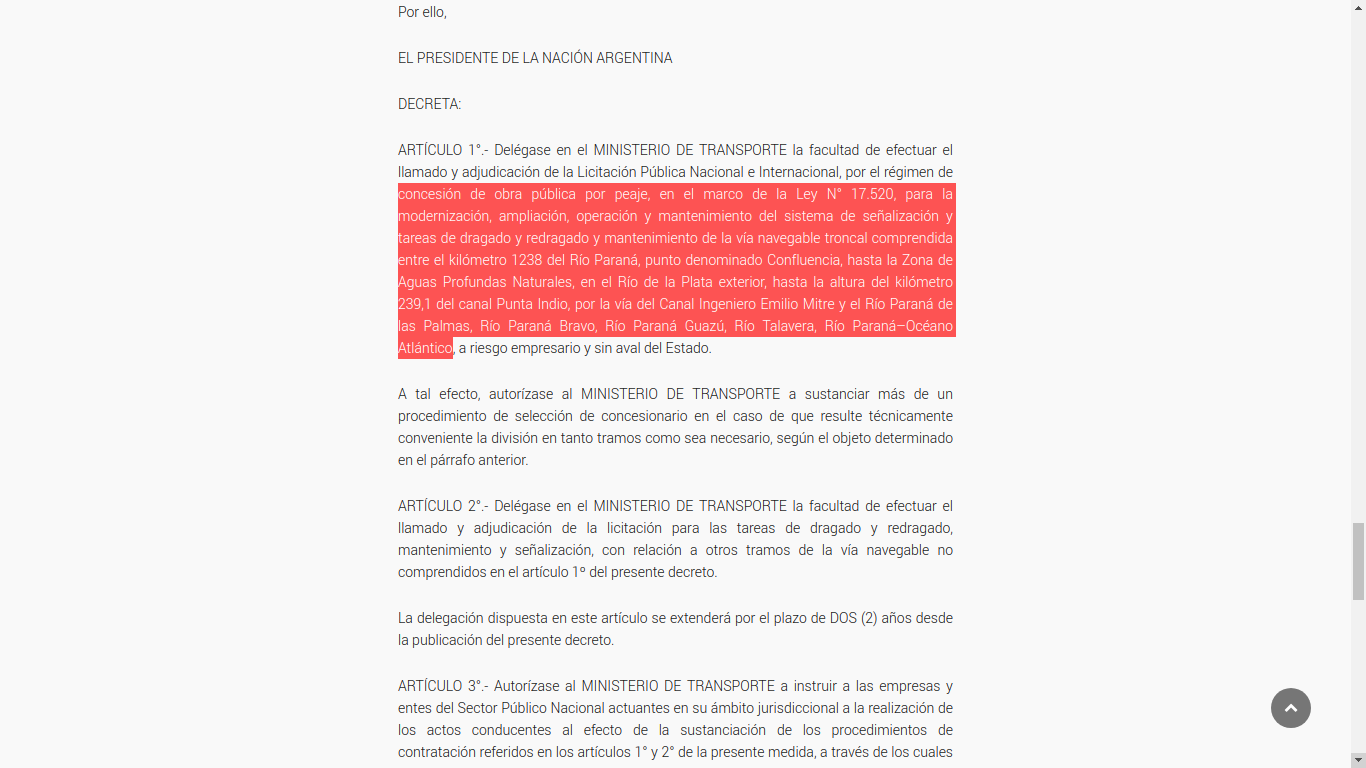 El ingeniero Horacio Tettamanti, ex Subsecretario de Puertos y Vías Navegables de la Nación, explicó hoy el entramado del Decreto 949/20, publicado el 26 de noviembre pasado en el Boletín Oficial. En declaraciones radiales, Tettamanti acusó que dicho decreto generó la pérdida de la soberanía del Río Paraná, Río de la Plata y Atlántico sur.