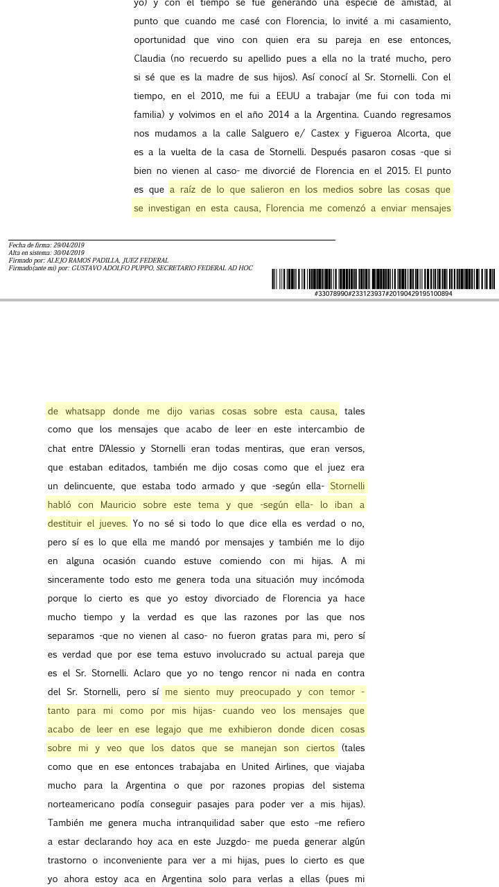Acá puede leerse la parte más jugosa de la declaración testimonial:
