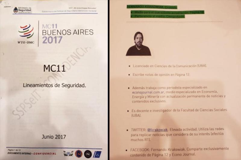 Son responsables directos de estas tareas ilegales de inteligencia los ex directores de la AFI, Gustavo Arribas y Silvia Majdalani, y quien conducía el ministerio de Seguridad, Patricia Bullrich. La Ley de Inteligencia Nacional dispone en el artículo 4 inciso 2 que está prohibido “obtener información, producir inteligencia o almacenar datos sobre personas, por el solo hecho de su raza, fe religiosa, acciones privadas, u opinión política, o de adhesión o pertenencia a organizaciones partidarias, sociales, sindicales, comunitarias, cooperativas, asistenciales, culturales o laborales, así como por la actividad lícita que desarrollen en cualquier esfera de acción”.