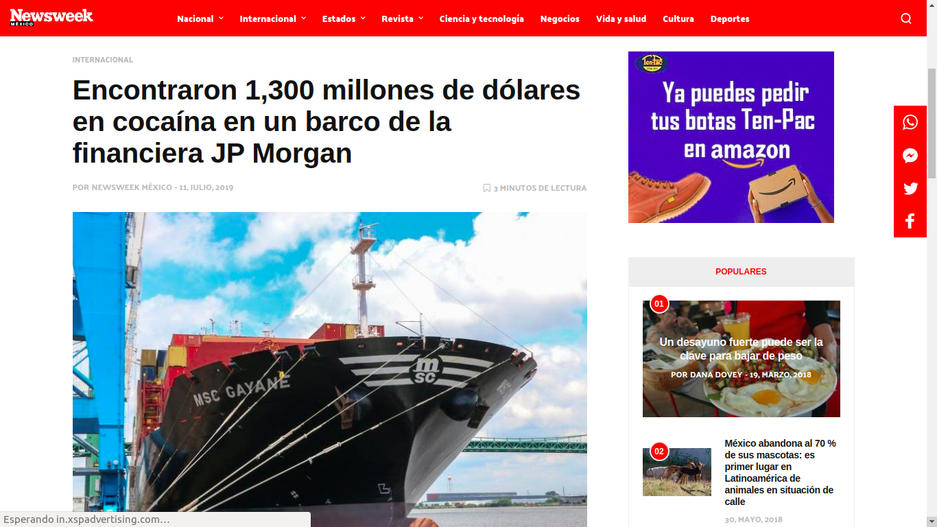 JP Morgan Chase había sido denunciado tiempo atrás por descubrirse un barco, propiedad del banco, cargado con cocaína.