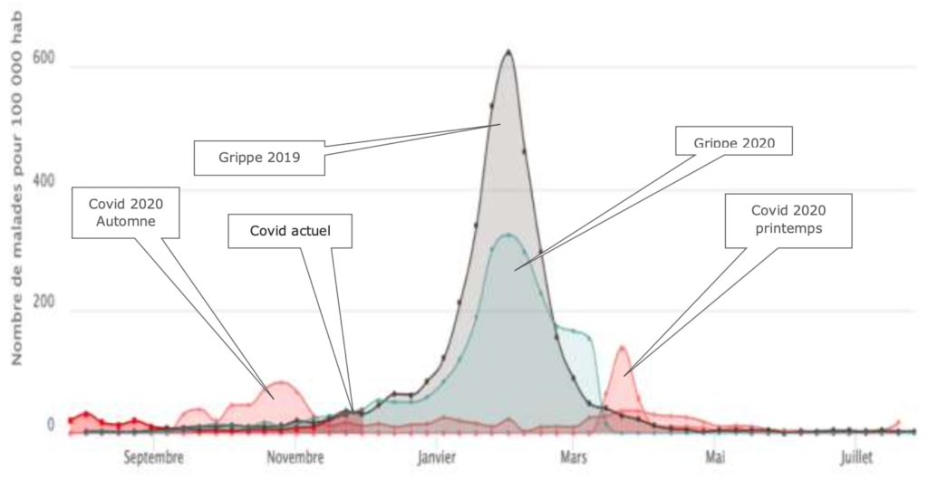 La segunda observación que hacen es que «no se justifica anunciar sistemáticamente lo peor». La realidad es, ante todo, que es engañoso presentar una «curva de casos positivos» (que depende de muchos factores, empezando por los test) como una curva de «numero de pacientes». La gran mayoría de las personas con este virus siempre ha tenido pocos o ningún síntoma.» Consideran, en comparación con los datos de otras infecciones estacionales, que «la especificidad de la epidemia de Covid probablemente no radique en su peligrosidad intrínseca, sino más bien en la respuesta terapéutica, o más bien en la ausencia de una respuesta terapéutica, a la que se opusieron los médicos por instrucciones del gobierno que primero favorecían las medidas no farmacéuticas -confinamientos, toques de queda- y después la «solución vacunal».