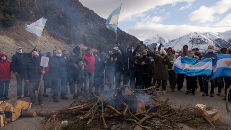 Sin embargo, durante la manifestación no se registraron hechos de violencia. Los vecinos desplegaron banderas argentinas y entonaron el himno nacional en la ruta.