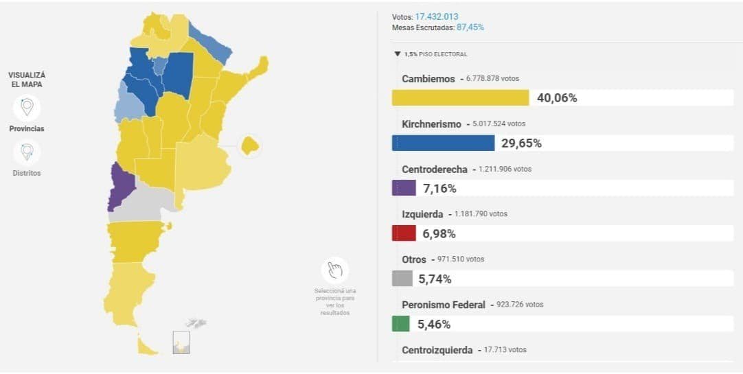 El Frente de Todos, que había planteado las elecciones primarias como un plebiscito de su gestión, sufrió una fuerte derrota incluso en distritos históricamente afines, como las provincias Santa Cruz y de Chaco. A nivel país, la coalición gobernante obtuvo un magro 30% de los votos, contra un 40% del frente macrista. La caída en la provincia de Buenos Aires, por 33% contra el 38% de «Juntos», perdiendo en 7 de las 8 secciones electorales, enciende alarmas rojas en la coalición gobernante.