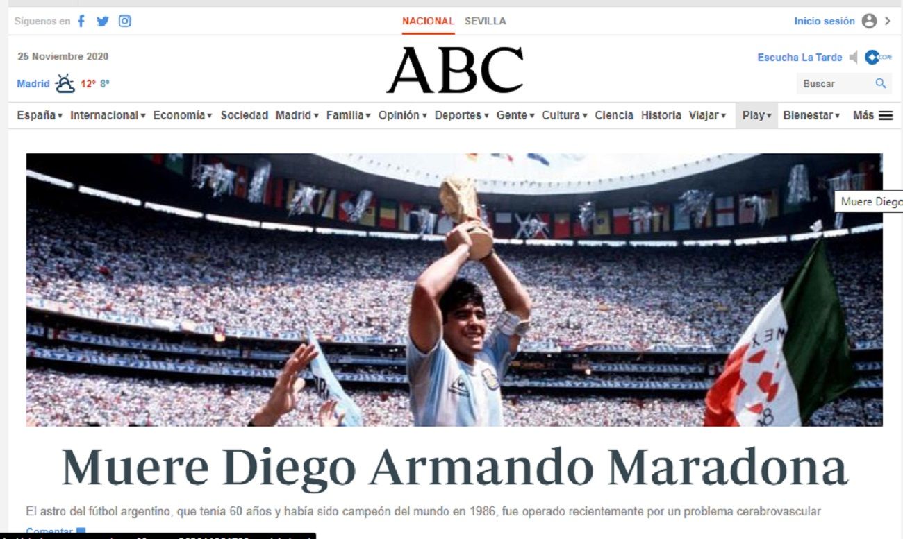 Conocida la noticia de la lamentable muerte de Maradona, las tapas de los principales diarios del mundo, personalidades e instituciones mostraron sus condolencias.