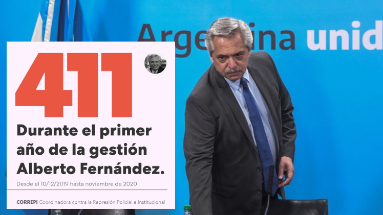 La Coordinadora contra la Represión Policial e Institucional de Argentina (Correpi) reveló que durante el primer año de gobierno de Alberto Fernández las fuerzas de Seguridad asesinaron a 411 personas. «Archivo 2020. Las necesidades del pueblo son esenciales. ¡La represión no!», es el título del informe en el que Correpi estudió el impacto de las medidas que se tomaron contra el coronavirus, como las cuarentenas obligatorias y el control policial de las mismas.