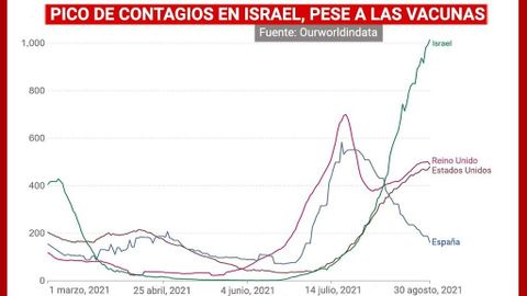 Israel, donde los contagios de la «variante delta» aumentan rápidamente, el gobierno intenta controlar el brote con la inoculación de una tercera dosis, decidiendo el 29 de agosto pasado incluir en esta medida a todo el grupo de mayores de 12 años.
