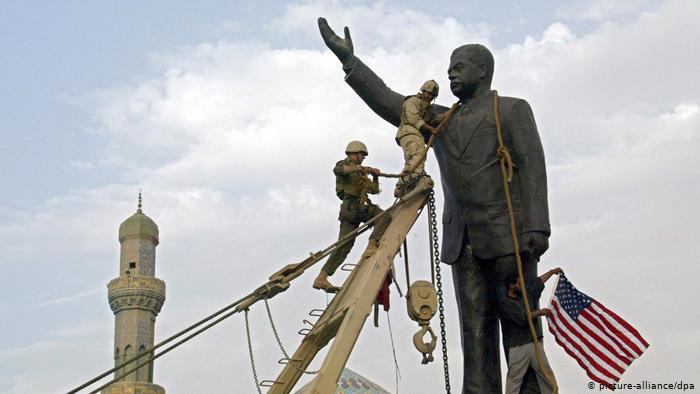 En 2002, el presidente George W. Bush argumentó que el presidente iraquí Saddam Hussein tenía armas químicas y biológicas, buscaba armas nucleares, apoyaba el terrorismo y amenazaba la paz.