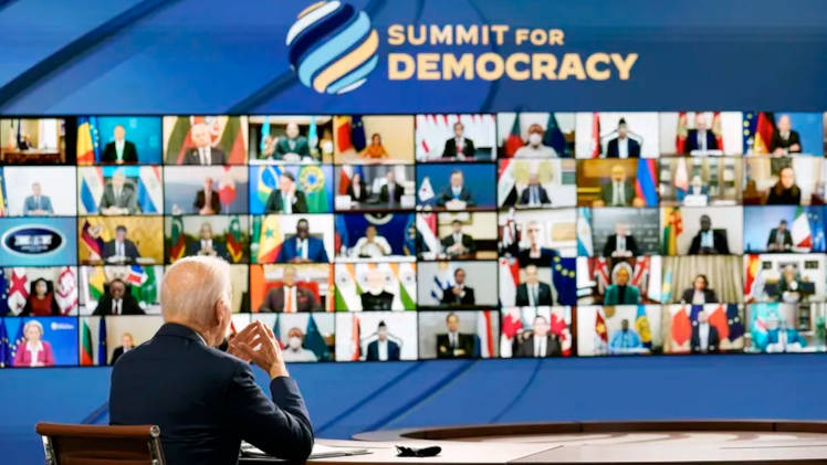 Desde el inicio mismo de la cumbre, el presidente Biden tuvo que reconocer que ningún país es ‎verdaderamente democrático y que la democracia es un valor que aún estamos ‎buscando. Afirmó que, en la práctica, todos podían ver que hay retrocesos –como los hechos registrados el 6 de ‎enero de 2021 en el Capitolio de Washington– probablemente imputables a la llegada de una ‎nueva generación. Agregó que eso demostraba que es necesario trabajar para recuperar el ‎terreno perdido en esos «retrocesos democráticos». Pero ese lindo discurso permite ante todo ‎dar la impresión de que existe un consenso y evadir así la necesaria clarificación del debate. ‎