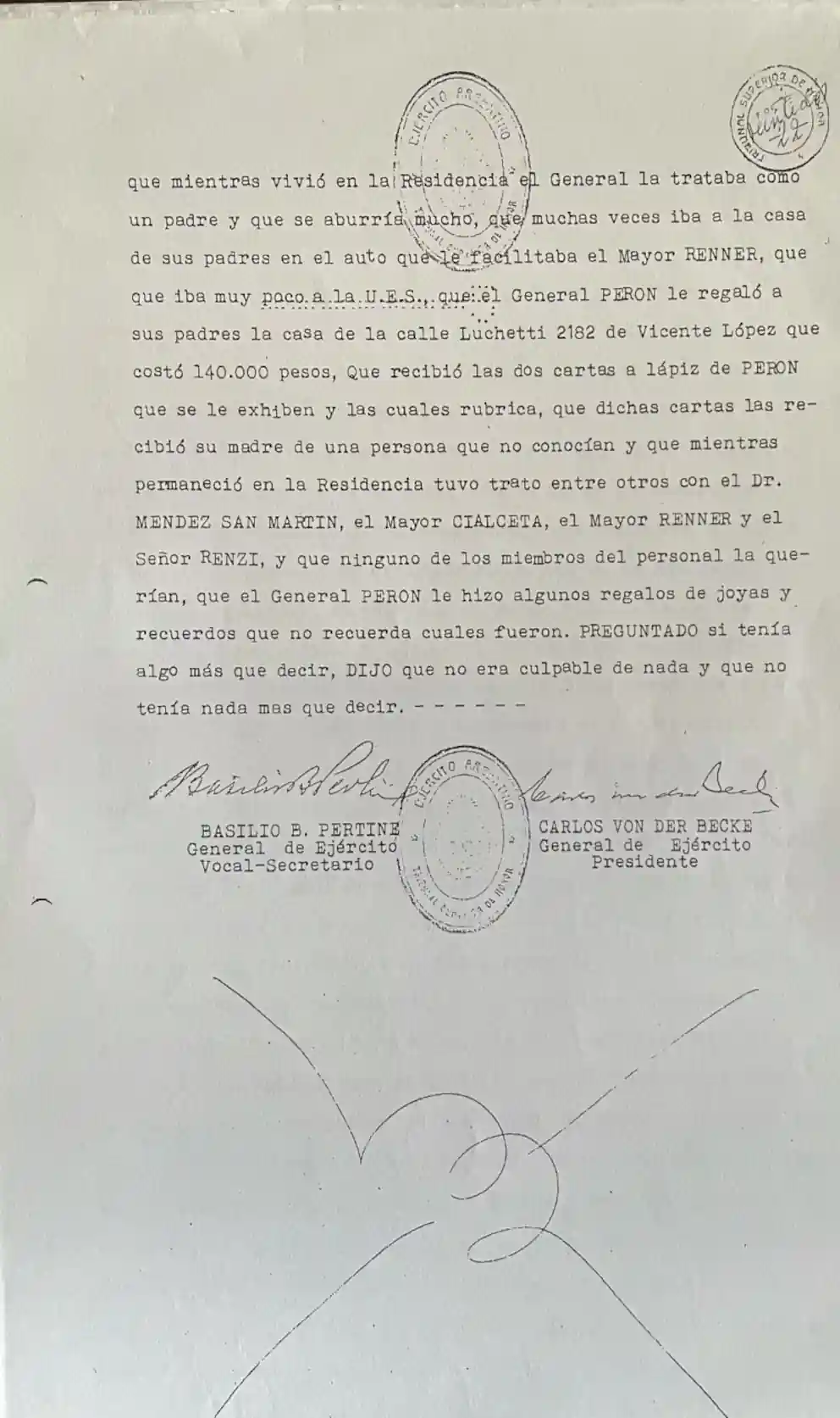 Estas son algunas de las tantas declaraciones y documentación verídica del Tribunal de Honor al que fue sometido Perón: