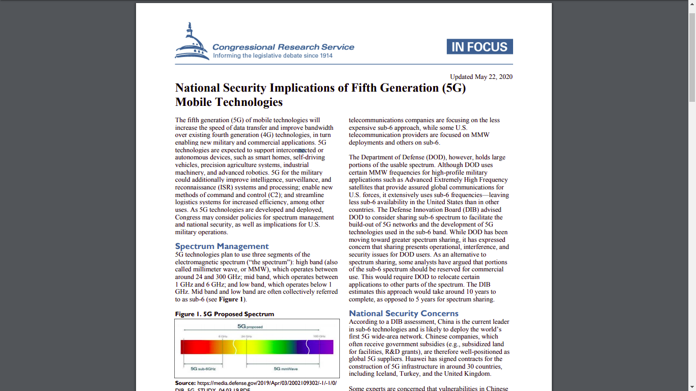 Particularmente ventajoso es el hecho que «la tecnología emergente 5G, comercialmente disponible, ofrece al Departamento de Defensa la oportunidad de aprovechar a bajos costos ese sistema para sus propias exigencias operacionales». En otras palabras, la red comercial 5G, instalada por empresas privadas, será utilizada por las fuerzas armadas de Estados Unidos que obtendrá así costos inferiores a los que tendría que enfrentar si tuviese que instalar una red con fines exclusivamente militares. Lo mismo sucede en otros países.