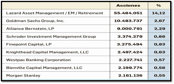 La participación de Lazard Asset Management (Lazard) se mantuvo más o menos constante al menos hasta diciembre de 2015. Según el balance de YPF SA presentado a la SEC al cierre del mismo año, la participación accionaria de Lazard se ubicaba en un 3,42%, la segunda privada más importante después de la Familia Slim (5,37%) y por encima de Goldman Sachs, con el 3,05%. Sin embargo, y según se supo el pasado 24 de marzo, el diario Ámbito Financiero informaba que el capital accionario de Lazard en YPF llegaba a 14,12%: