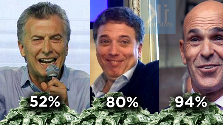 Al actual ministro de Hacienda, y ex periodista del Grupo Clarín, Nicolás Dujovne, tampoco le fue nada mal. Solo en 2018 aumentó su patrimonio un 80%, declarando $218.354.834 pesos, repartidos en bonos, acciones, depósitos y propiedades. Del total, una buena parte, permanece fuera del país: $1.604.071 dólares en bancos de EEUU y Uruguay; $1.053.562 en la sociedad Florentine Global de Islas Vírgenes; acciones en las sociedades uruguayas Para Bien S.A. y Jilym Company S.A; un terreno en el vecino país rioplatense por $12 millones de pesos y una casa en la localidad charrúa de José Ignacio por $36 millones.