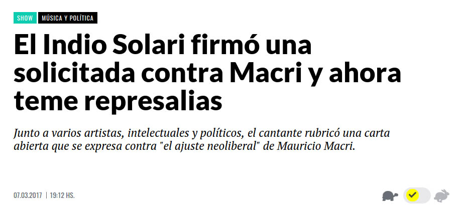 ¿Tendrán algo que ver con lo ocurrido las sistemáticas declaraciones del Indio Solari contra Mauricio Macri? Hace menos de una semana su firma había aparecido encabezando una solicitada en contra del gobierno.
