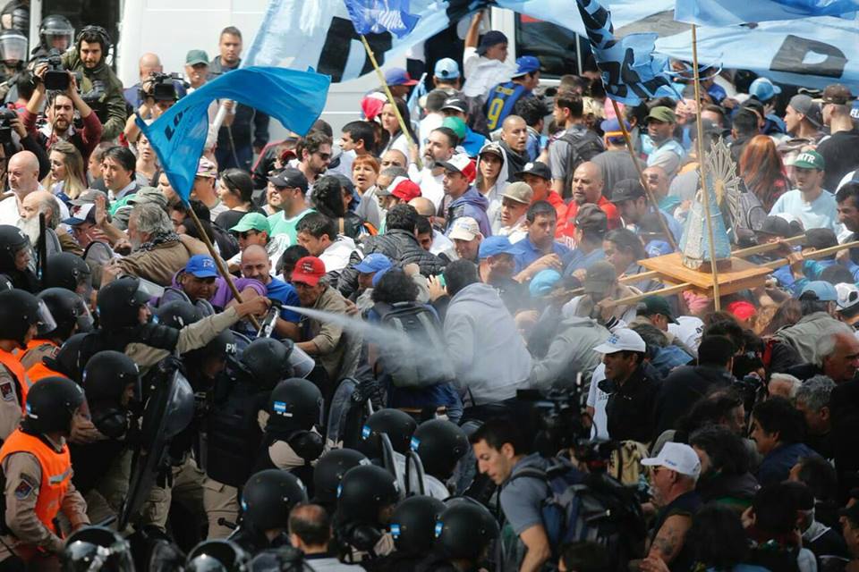 Sergio Palazzo: «El gobierno le da respuesta al sector financiero pero palo y Gendarmería a los trabajadores. si hacen falta una y mil marchas, uno y mil paros, si no hay respuesta habrá que intensificar un plan de lucha que nuclee a todos los sectores. No somos golpistas, queremos que cambien su política económica y que en 2019, por la vía democrática, podamos decir ‘sí, se puede’ cambiar a Cambiemos». «Si son opositores de verdad que se dejen de joder y tomen la decisión de no apoyar el Presupuesto».