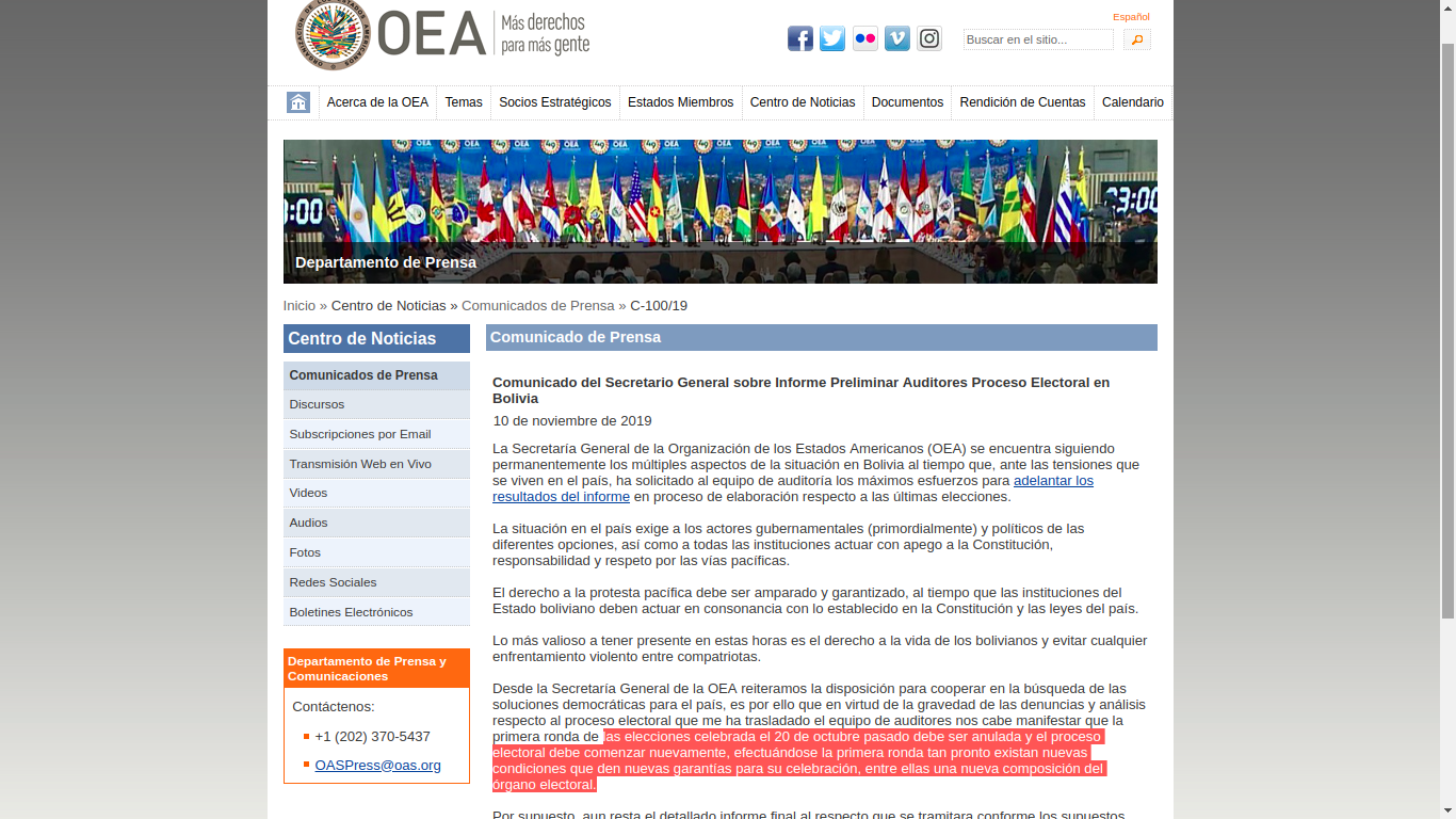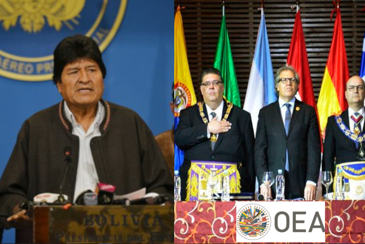 Luego del amotinamiento de la policía, la abstención de las FFAA y la presencia de bandas golpistas saqueando e incendiando edificios públicos en Bolivia, la OEA, históricamente alineada con los intereses de los EEUU, decidió adelantar su veredicto sobre la elección presidencial: «debe ser anulada y el proceso electoral debe comenzar nuevamente, efectuándose la primera ronda tan pronto existan nuevas condiciones que den nuevas garantías para su celebración, entre ellas una nueva composición del órgano electoral». Ante el caos en que se vio sumida Bolivia, y solo con sus movimientos sociales, Evo Morales ya había anunciado que acataría la decisión de la OEA, por lo que convocó a nuevas elecciones. El escenario muestra a las claras la necesidad de construir una organización de naciones sudamericanas, libre de la injerencia de los EEUU, que reemplace el rol arbitral de la OEA.
