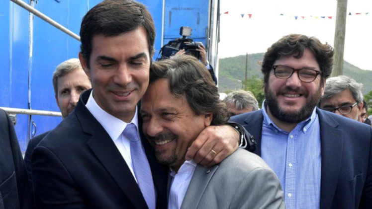 El anterior y el actual gobernador de Salta, Urtubey y Sáenz, abrazados.