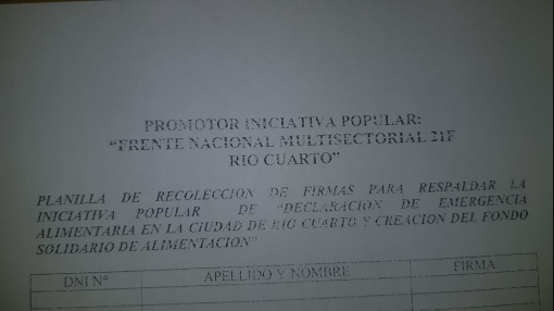 En la localidad cordobesa, ya comenzó la recolección de firmas para la declaración de la emergencia alimentaria y la creación de un fondo solidario de alimentación.