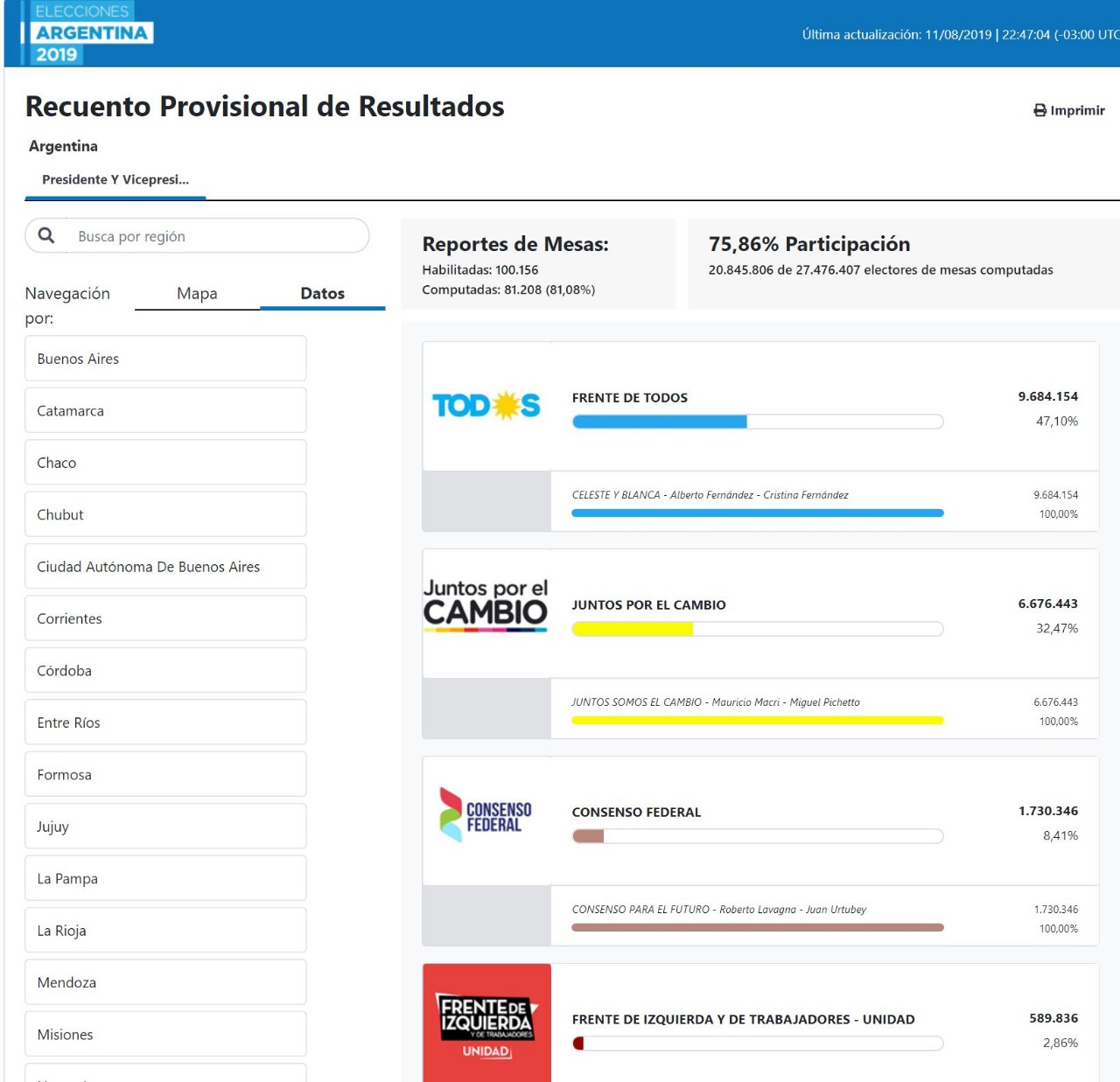 La realidad de la calle y el día a día se impuso por histórica goleada sobre el relato de miles de radios y canales de televisión en todo el país.