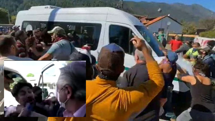 Sobre el problema minero Fernández había asegurado: “Ese es un tema de la provincia, no un tema mío. Es de los chubutenses. Conozco la mirada que hay en la zona cordillerana y en el resto de Chubut. Pero eso debe resolverse acá”. Solo un par de minutos después de estas declaraciones, ocurrió un nuevo enfrentamiento, en el que manifestantes volvieron a alcanzar el vehículo que llevaba al Presidente y lo atacaron. El vocero presidencial, Juan Pablo Biondi, recibió un golpe en la cabeza, y el propio Fernández quedó a pocos centímetros de los agresores.